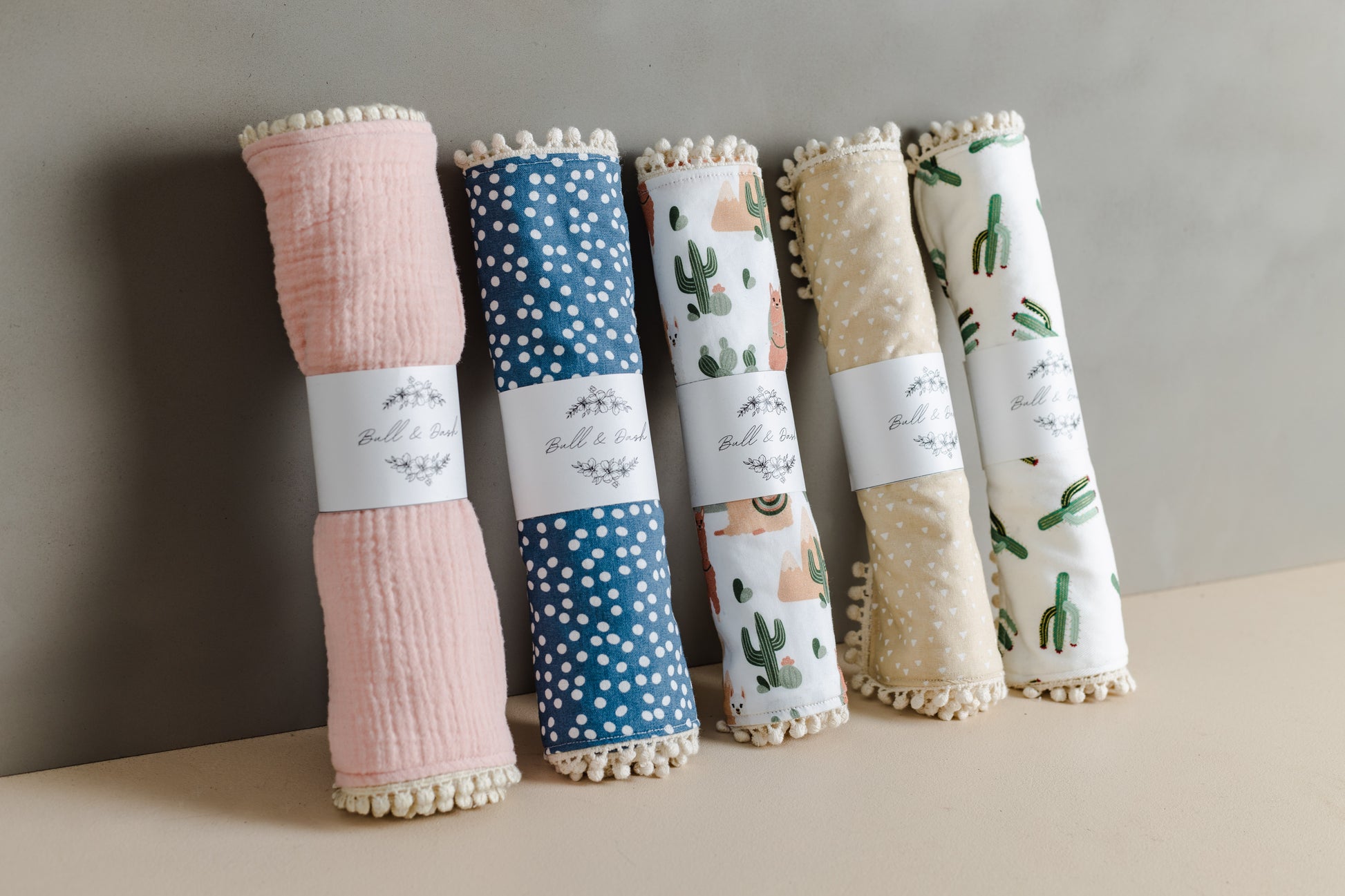 The Base box comes inclusive with the dried arrangement, JellyCat Bunny, a burping cloth, bib & card.
