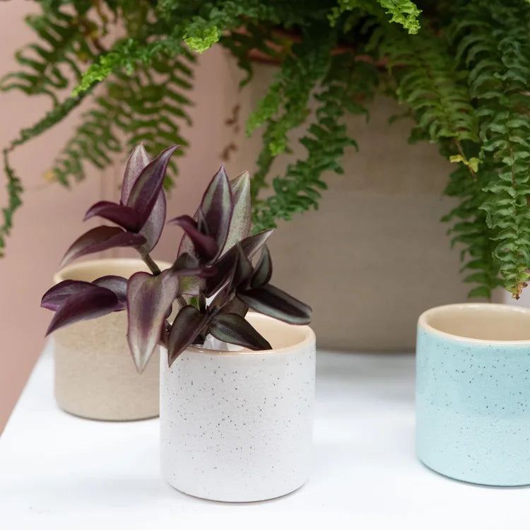 The Capri planter is the perfect neutral pot. Made from ceramic, it features a gloss finish on the top half of the planter and the bottom of the planter has a matte textured finish. It features a drainage hole, so it is perfect for you to pot directly inside this one. Each piece is handmade and hand finished- so each one is unique. There may be slight variations from each pot.