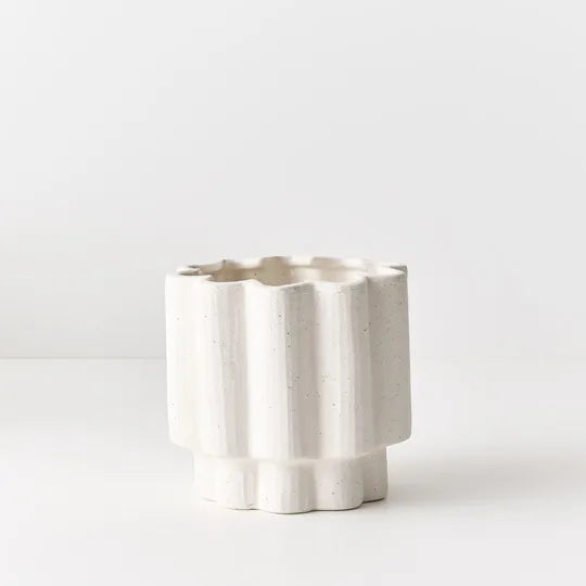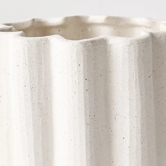 Elevate your space with this sculptural pot, featuring a textured, matte finish and a bold, ribbed design. Perfect for adding character to any room. This pot does not have a drainage hole.
