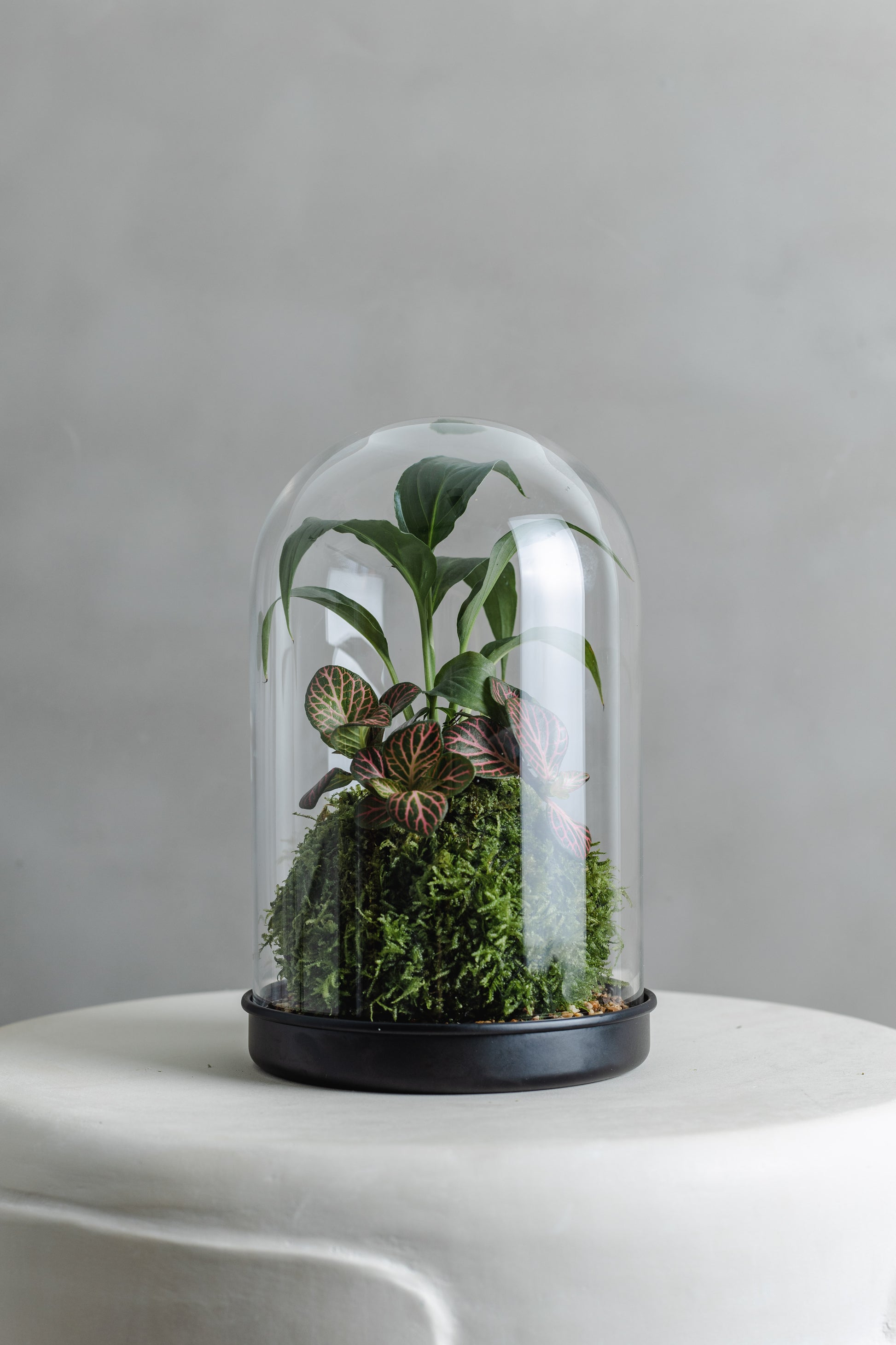 Mossball Greenhouse, Fittonia & Peace lily (Dark Green Leaf, Pink Vein/ Bigger leaf))