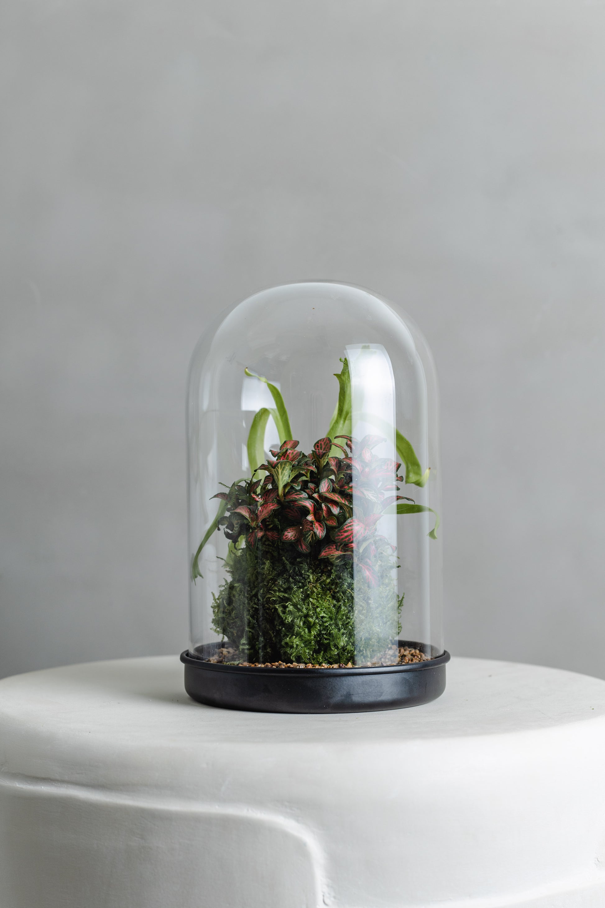Mossball Greenhouse, Fittonia & birds nest combo (Dark Green Leaf, Red Vein)